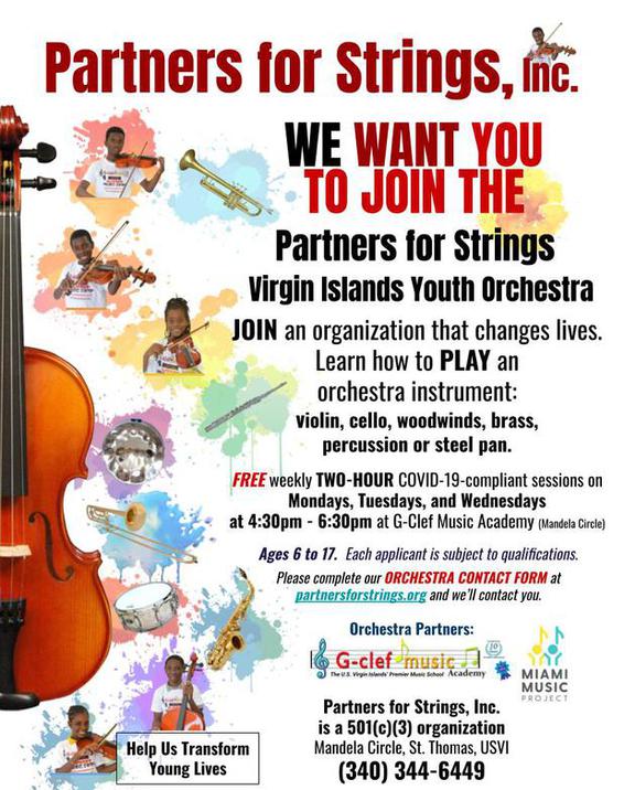 The Partners for Strings Virgin Islands Youth Orchestra is inviting students to come and learn how to play instruments for the orchestra:
