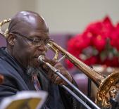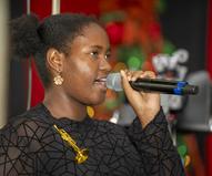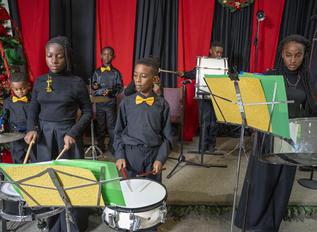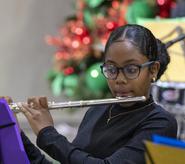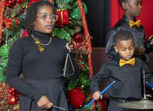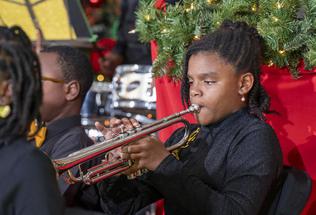 The 17 young players on violin, cello, flute, trumpet, clarinet, steel pan and drums relay the excitement of peace and joy through classic Christmas carols. The special features guest vocalist--the incomparable Lorna Freeman-Woodley singing "Silent Night", plus a trio of G-Clef Music Academy students sing "Joy to the World" arranged by Kandis Gumbs. Both songs were accompanied by Aboris De Jesus.